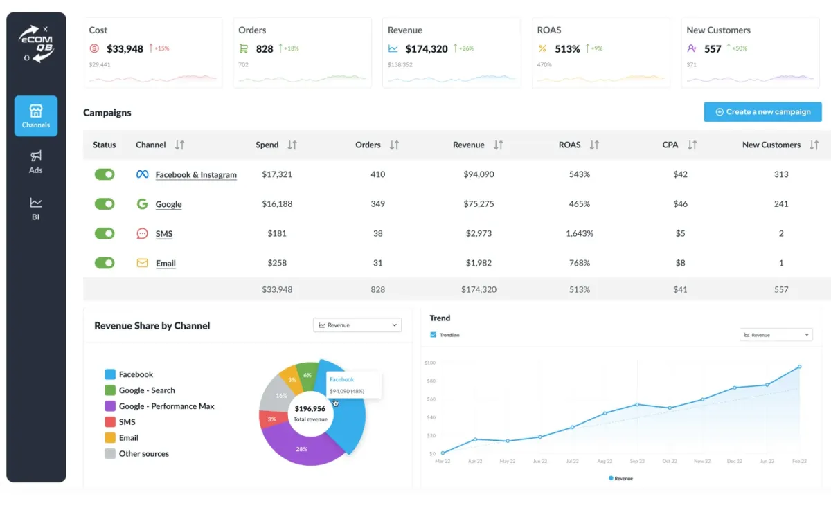 AI that continuously optimizes acquisition, improving targeting, creative, and spend to drive more revenue from every dollar.