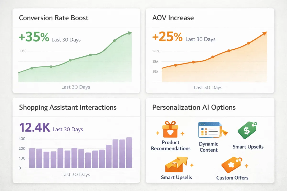 Always-on AI sales, support, and personalization that increases conversion and AOV through smarter offers, upsells, and real-time behavior.